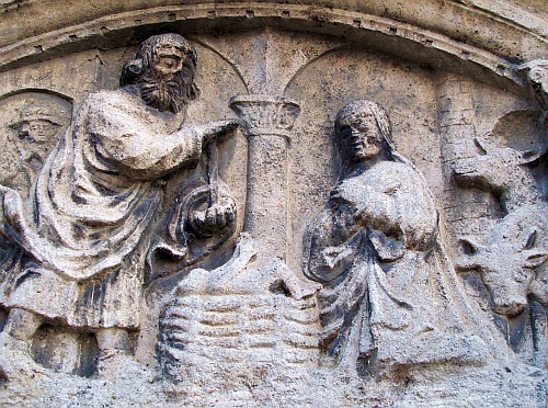 Mittelalterliche Krippendarstellung an der Fassade der Marktkirche St. Christophorus in Bad Abbach (Foto:P. Staniczek)